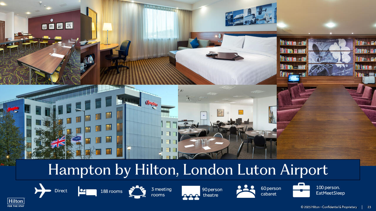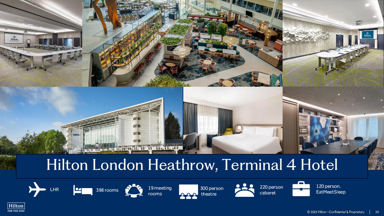 Seamless connections, standout spaces.Whether you’re touching down or taking off, our London airport hotels are designed to impress. From efficient overnights to award-worthy occasions, we offer the perfect balance of convenience and quality.At Hilton London Heathrow Airport, expect unrivalled connectivity, premium meeting facilities, and impressive event spaces that have hosted everything from executive boardrooms to grand gala dinners.Meanwhile, Hampton by Hilton London Luton Airport delivers comfort, service, and smart meeting solutions just minutes from the terminal.