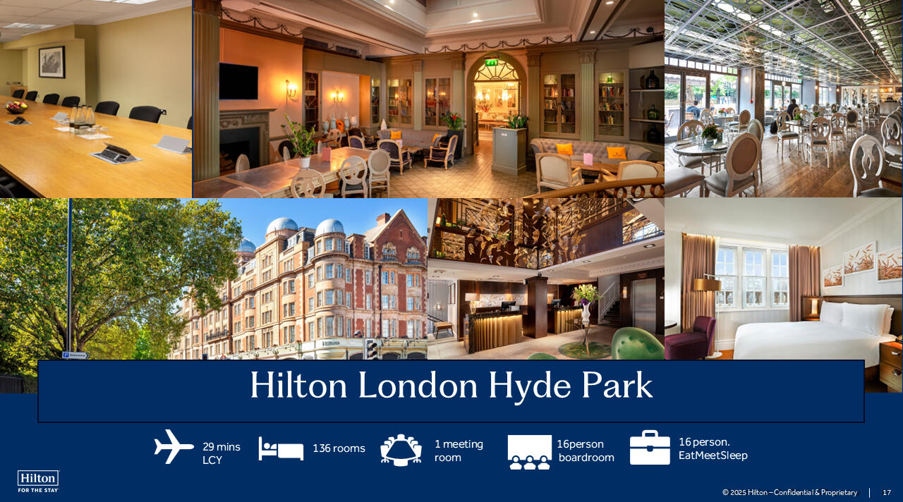 In the heart of one of the world’s most iconic capitals, Hilton’s Central London collection offers an unbeatable base for meetings, incentives, conferences, and events. With 12 exceptional hotels across key postcodes – from Westminster and Park Lane to Shoreditch and Tower Bridge – our diverse portfolio delivers both location and flexibility for planners looking to impress.Whether you’re hosting C-suite board meetings, large-scale international conferences, or luxury incentive escapes, there’s a Hilton to match your brief. Choose from historic grandeur, design-led boutique spaces, or major conference hubs with capacities for up to 1,500 delegates. With excellent transport links, walkable access to cultural landmarks, and tailored event support, Central London is where business gets done – beautifully.